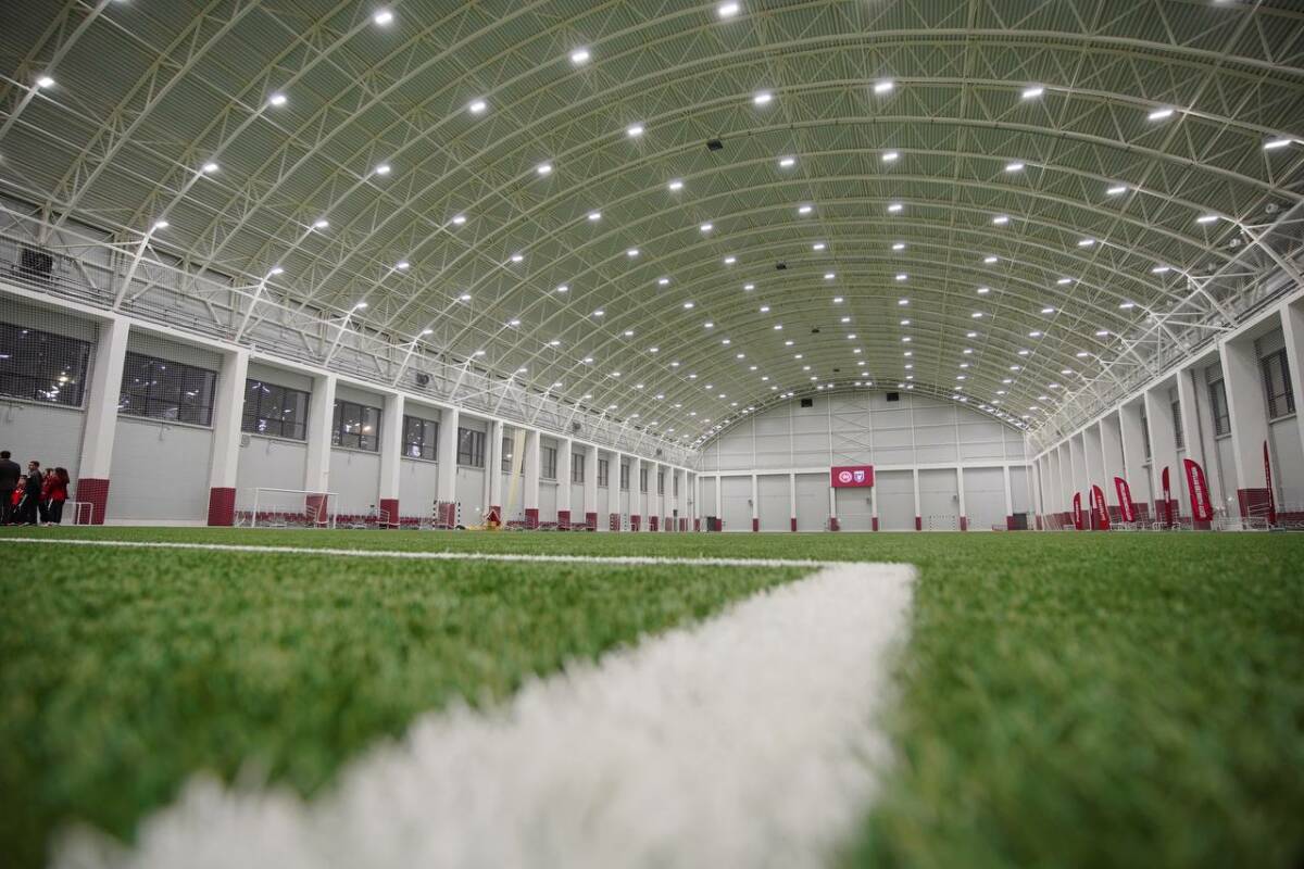 «В июне текущего года по первому этапу мы открыли современный крытый футбольный манеж. В манеже расположено футбольное поле 109 на 51 метр, 8 раздевалок для спортсменов, 8 тренерских и различные административно-технические помещения.