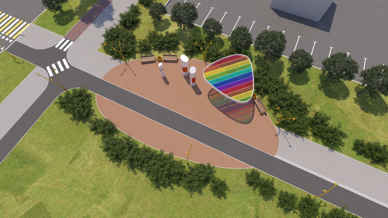Архитектор Эмиль Сиразетдинов пояснил, что помимо информационных пилонов на улице будут располагаться перголы с качелями, которые выполнят роль теневого навеса и защиты от дождя. К тому же это место может использоваться для фотографирования, поскольку прозрачное разноцветное оргстекло при прохождении солнечного света обеспечит интересный оптический эффект.