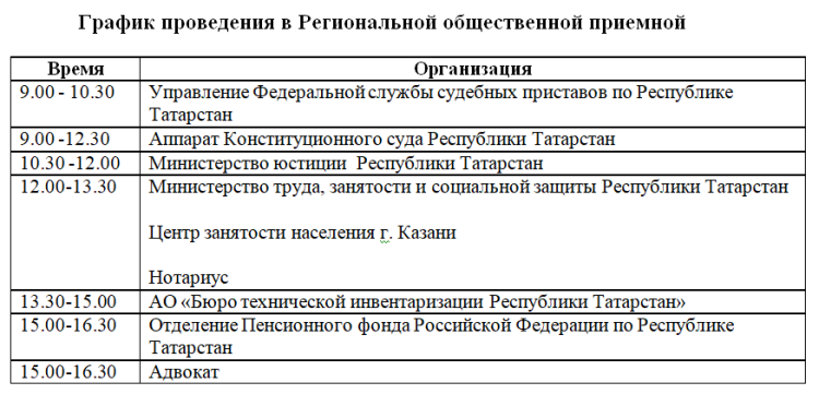 «В Казани эксперты будут принимать заявителей на площадке Региональной общественной приемной Председателя Партии „Единая Россия“ Дмитрия Медведева в РТ (ул. Карла Маркса, 31/7)», — говорится в сообщении.