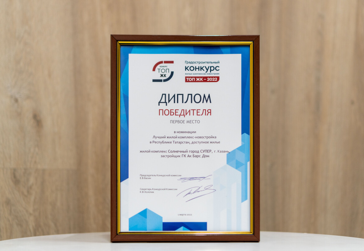 Кроме этого по итогам конкурса был отмечен проект «Солнечный Город Супер» как лучший жилой комплекс-новостройка в Республике Татарстан. Он занял первое место в номинации доступное жилье.