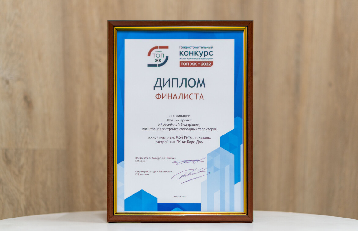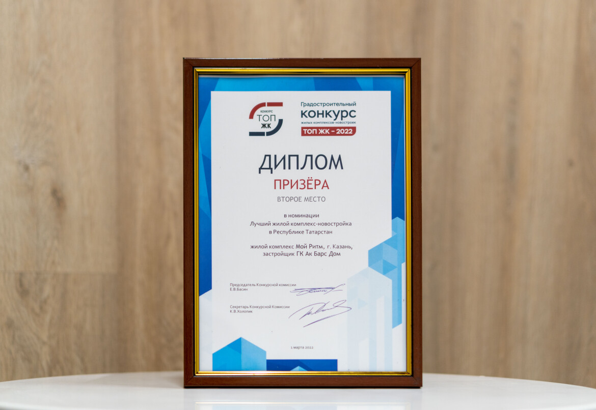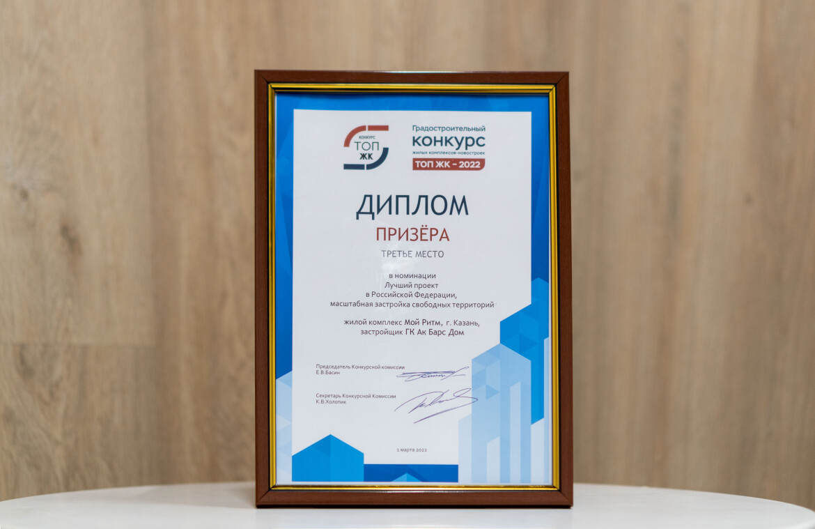 Проект «Мой Ритм» был отмечен на Федеральном уровне и занял призовое место среди всех ЖК по России. Это еще одно доказательство того, что «Ак Барс Дом» возводит проекты высокого уровня.