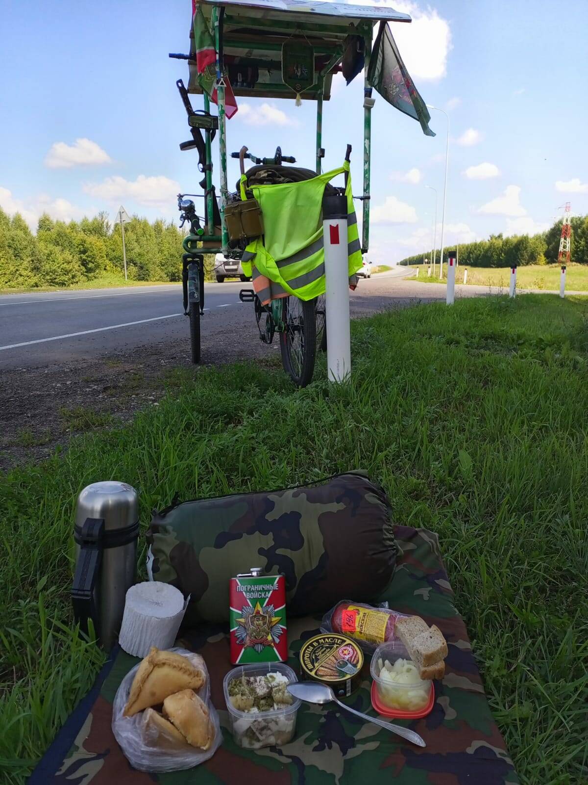 Активист уже проехал более 100 км. Вчера вечером он посетил село Никольское, потом прибыл в поселок Алексеевское, где заночевал у боевых товарищей. Сегодня он приедет в Рыбную Слободу, откуда планирует стартовать обратно завтра утром.