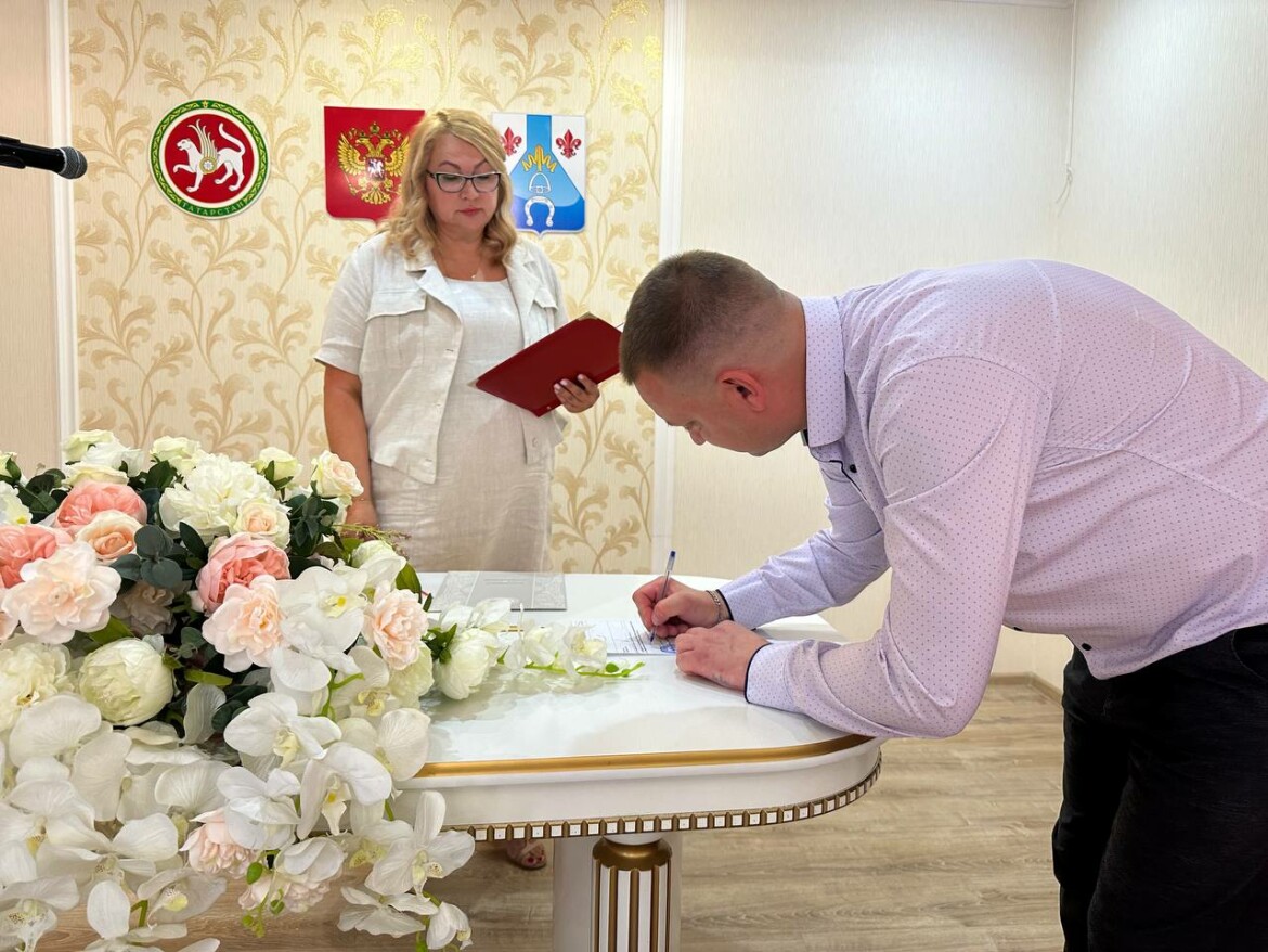 Сегодня, в День семьи, любви и верности, в Отделе ЗАГС исполнительного комитета Менделеевского района зарегистрировали свой брак будущий участник спецоперации Александр Коваль и Эльвира Ахметшина.