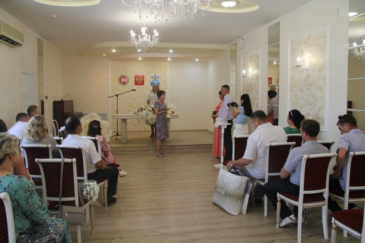 Бракосочетание прошло в торжественной обстановке. От лица администрации молодоженов поздравила заместитель главы Лейсан Галеева, а также представитель Фонда «Защитники Отечества» из Казани Наталья Макарова.