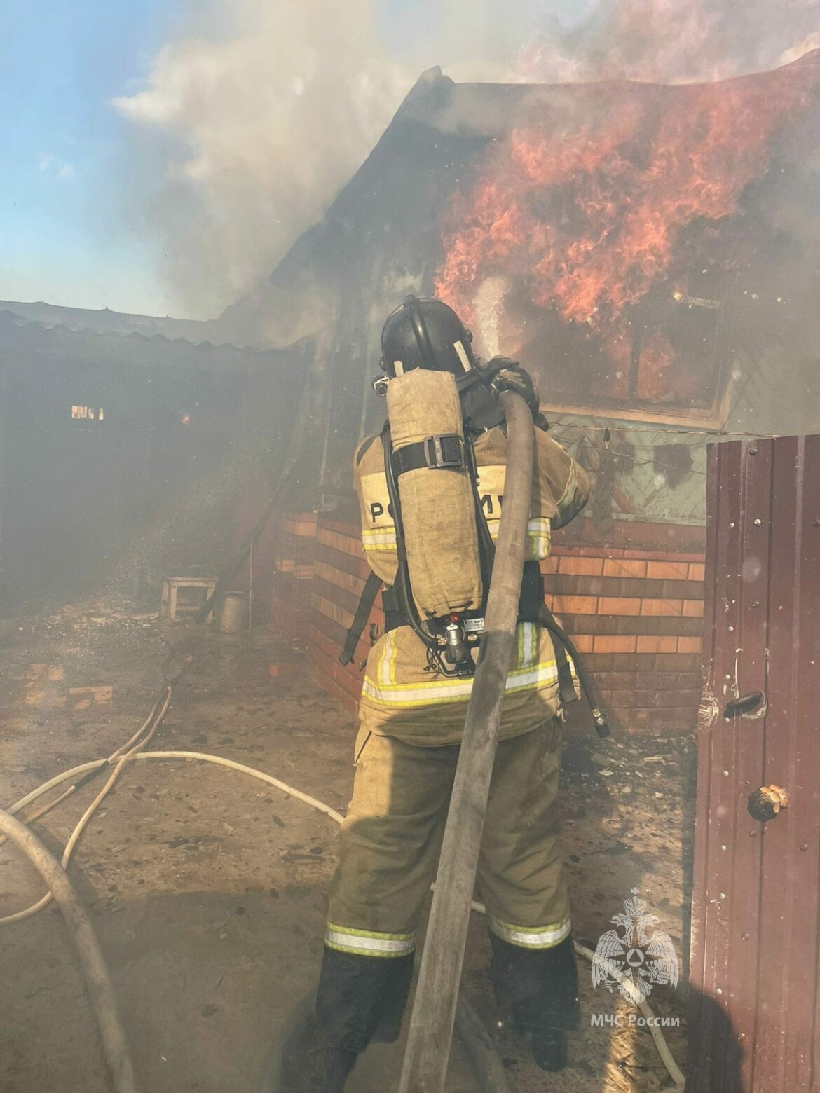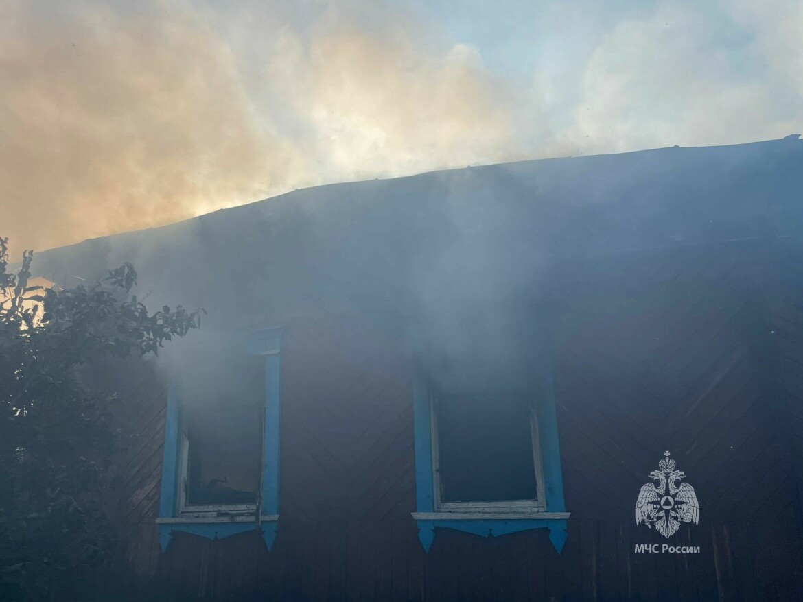 Прибыв на место, сотрудники МЧС установили, что на улице Космонавтов горит кровля частного дома и сарая. Площадь горения составила 64 квадратных метра.