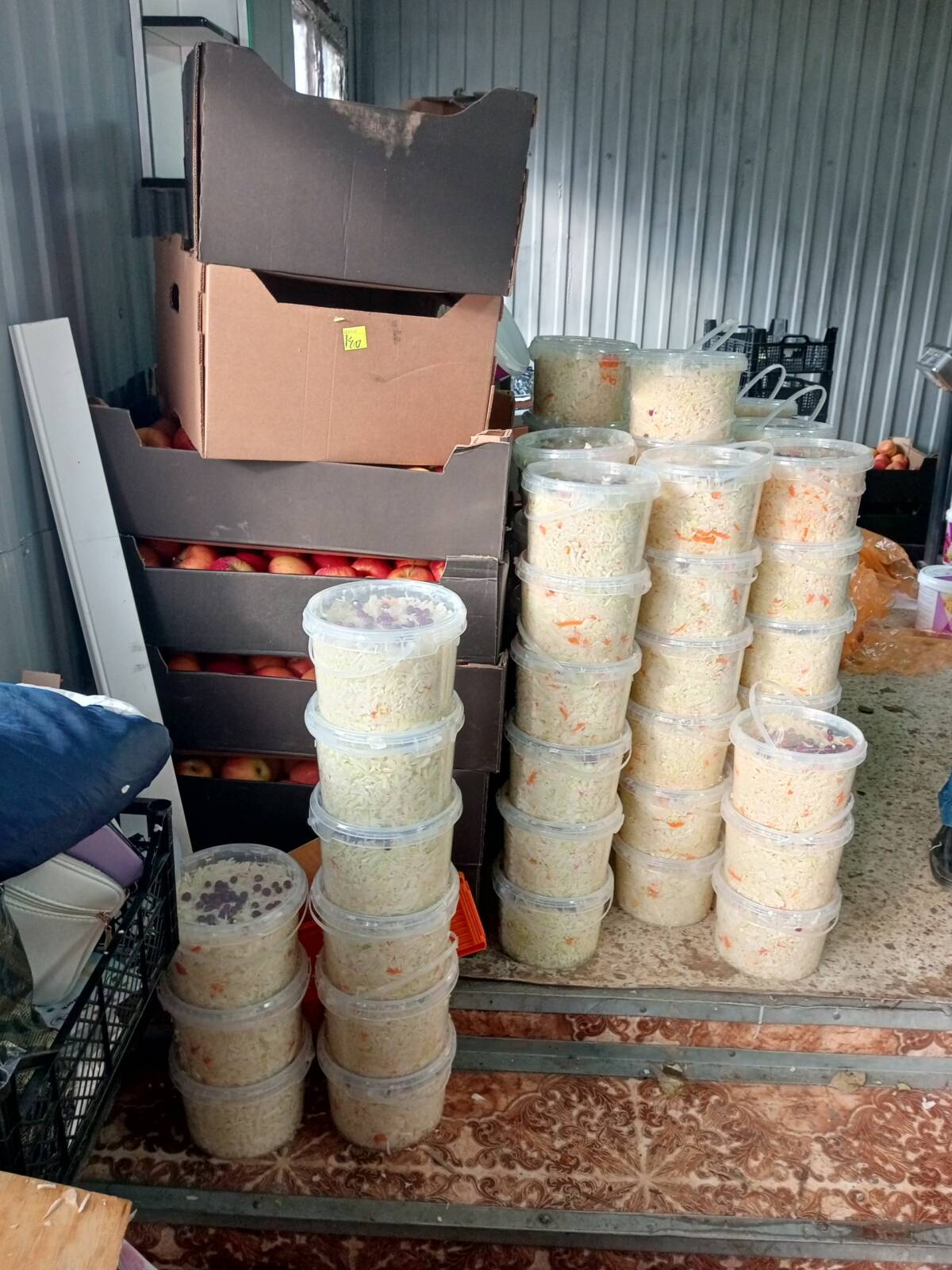 Работа развернулась на территории рынка напротив Парка Победы. Здесь десятки неравнодушных жителей шинковали и солили капусту прямо на улице и в помещениях рядом.