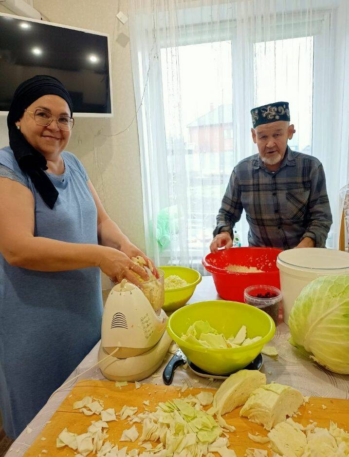«Когда сообщили, что будем квасить капусту для бойцов, я сразу обратилась к ветеранам и в мечеть. Переживали, что не успеем, но к делу присоединились все – семьями, соседями, улицами. Кто-то солит дома и привозит обратно. Не остались в стороне и 85-летние Рафис абый и Фания апа. Много капусты для засолки передал Ринат Сафин из мечети “Вочточная”», – отметила Рамзия Хамидуллина.