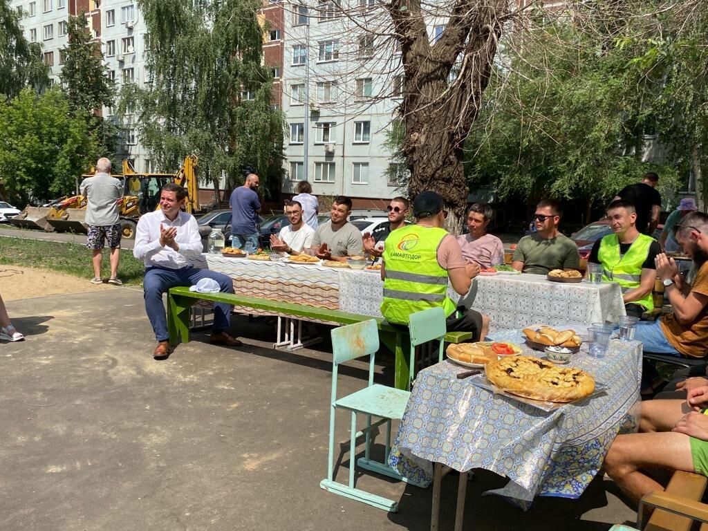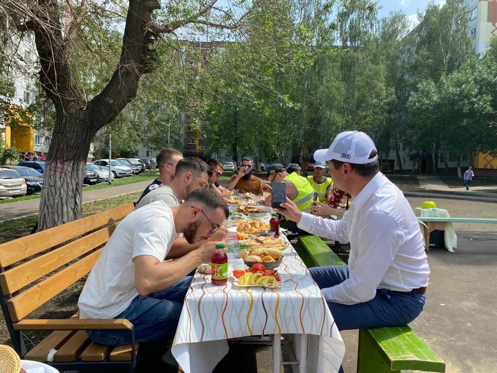 Жители дома 45/07 и актив ТОС «45-й комплекс» в Набережных Челнах при поддержке администрации Центрального района накрыли праздничный обед для работников подрядных организаций МУП «ПАД» и ООО «Камавтодор», которые благоустраивали их дворовую территорию в рамках республиканской программы «Наш двор».