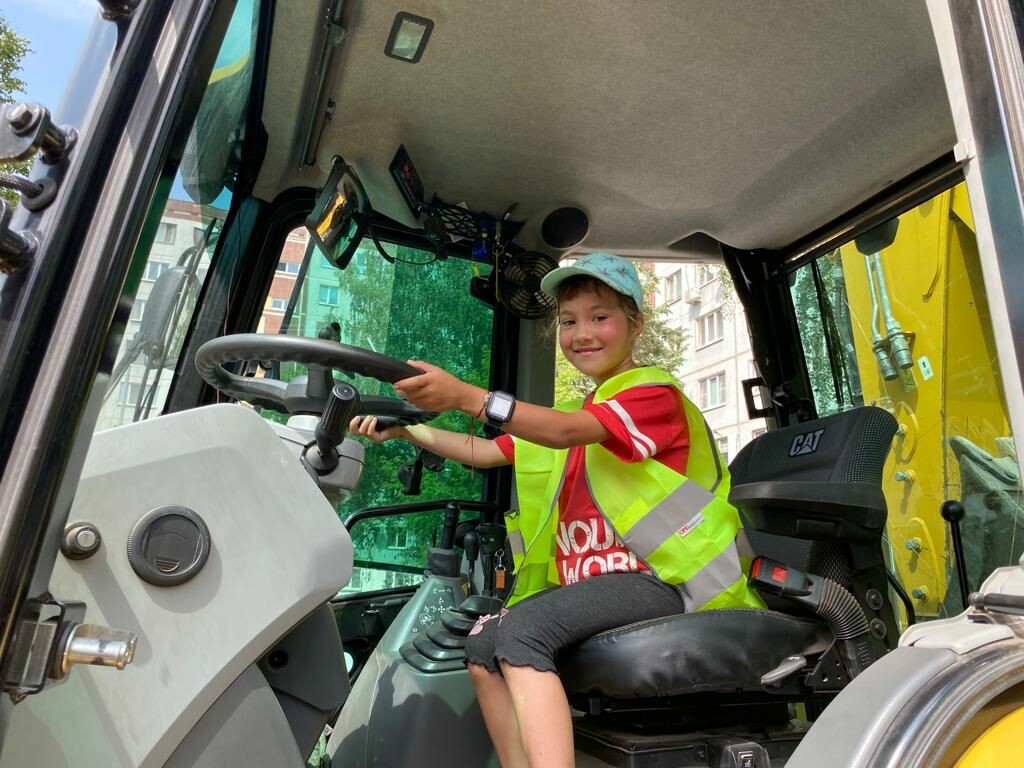 Работники в свою очередь поблагодарили организаторов мероприятия за добрые слова и угощение, а также продемонстрировали детям свою спецтехнику.