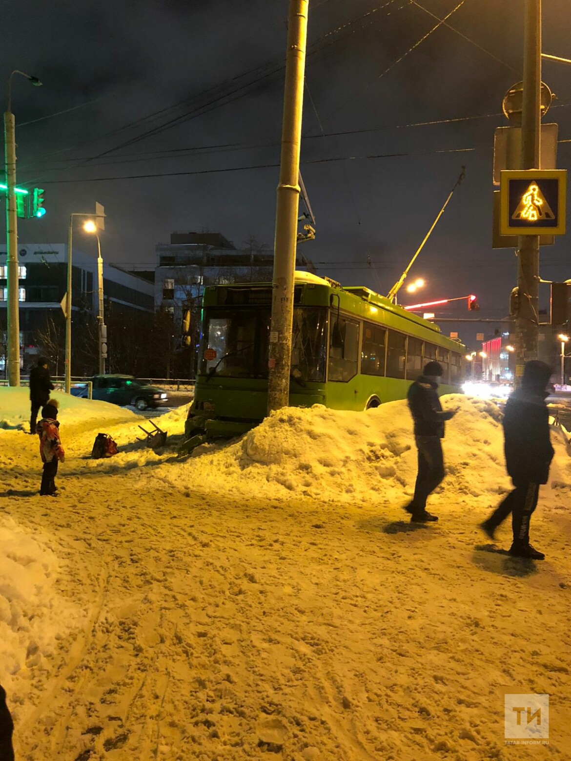 Жители Казани сняли на видео троллейбус, который на перекрестке влетел в столб