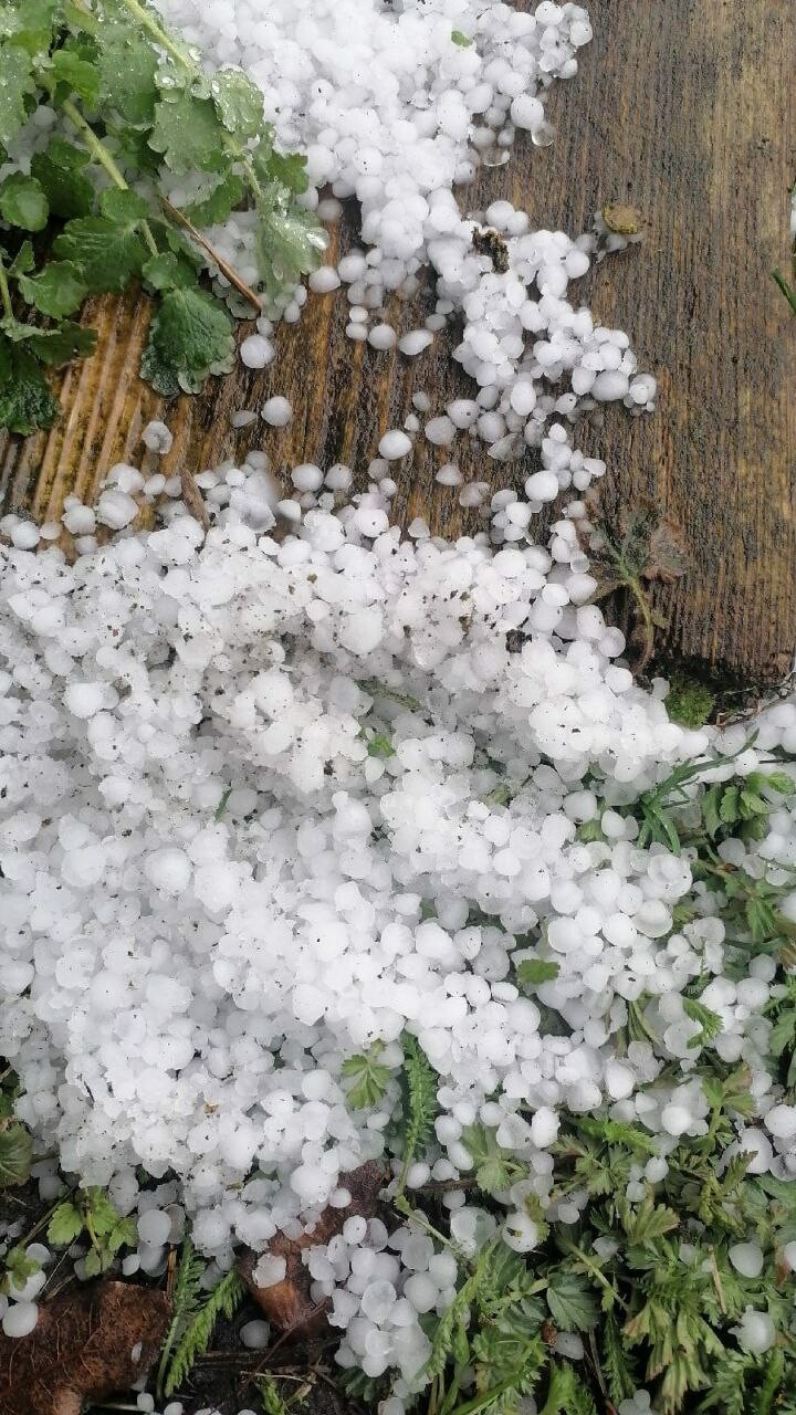 Так, по утверждению автора фото, сильный град прошел в Камско-Устьинском районе республики. На фото видно, что градины размером с мелкий горох.