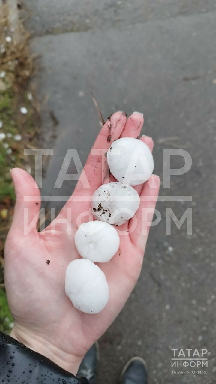 Некоторые районы республики уже накрыла непогода. Жители Зеленодольска сообщают о мощном дожде и граде с размером в кулак.