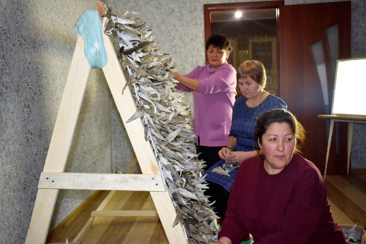 По словам Ландыш, такие изделия очень ждут на передовой — они нужны нашим воинам километрами. Маскировочные сети помогают не только скрыть военную технику, блиндажи, но и сохранить жизни солдат. Для их изготовления волонтеры используют современный материал — спанбонд. Вначале они делают заготовки — нарезают треугольные флажки, а затем их к основе сетей закрепляют узелковым методом.