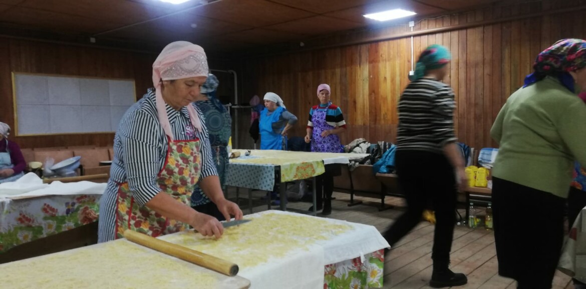 Необычный кондитерский цех расположился в местном Доме культуры. За работой повара поют трогательные песни и молятся. «Мы начали заниматься [помощью армии], когда у меня сын ушел на передовую по частичной мобилизации. Вот начали заниматься таким делом. Впервые стали печь чак-чак, лапшу домашнюю, плести маскировочные сети», — рассказала жительница села Назия Мустафина.