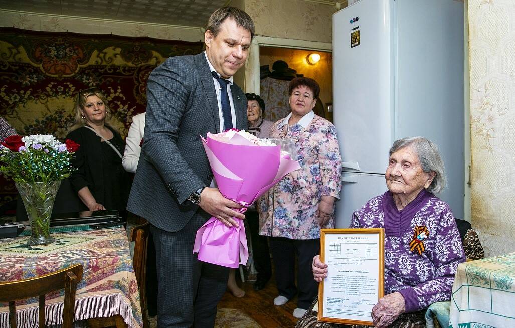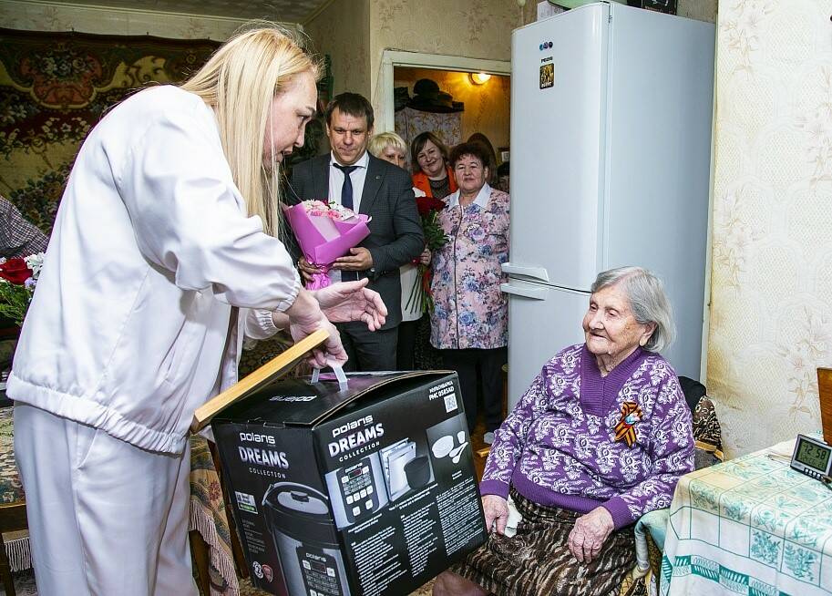 От имени сенатора Олега Морозова ей передали поздравительную телеграмму и подарили мультиварку. С напутственными словами выступил начальник управления экономики и промышленности исполкома Нижнекамского района Евгений Борисов, пожелав долгих лет жизни и благополучия.