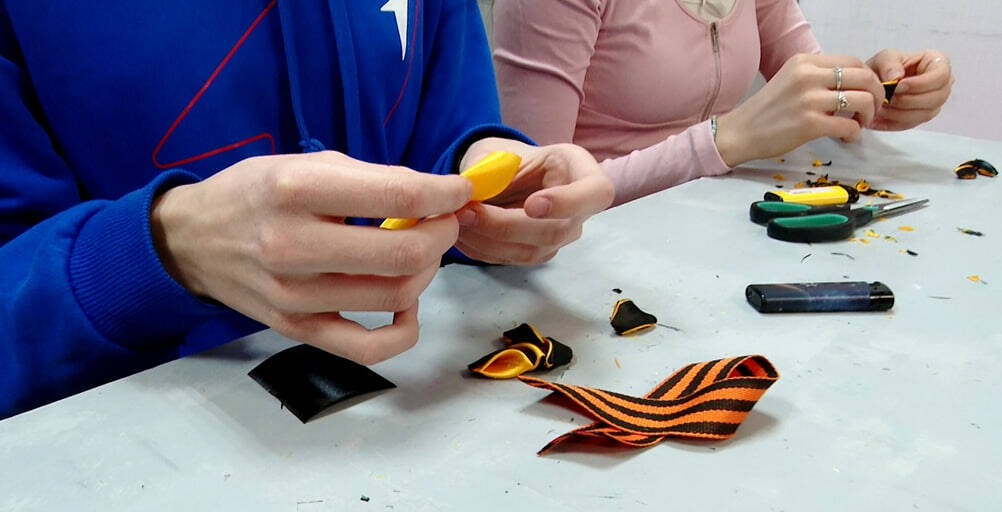 Память о Великой Победе объединяет поколения. В молодежно-подростковом клубе «Заря» города Альметьевска прошел мастер-класс по изготовлению брошей с Георгиевской лентой – символом мужества, стойкости и славных побед. К патриотической акции присоединились активисты «Движения первых».