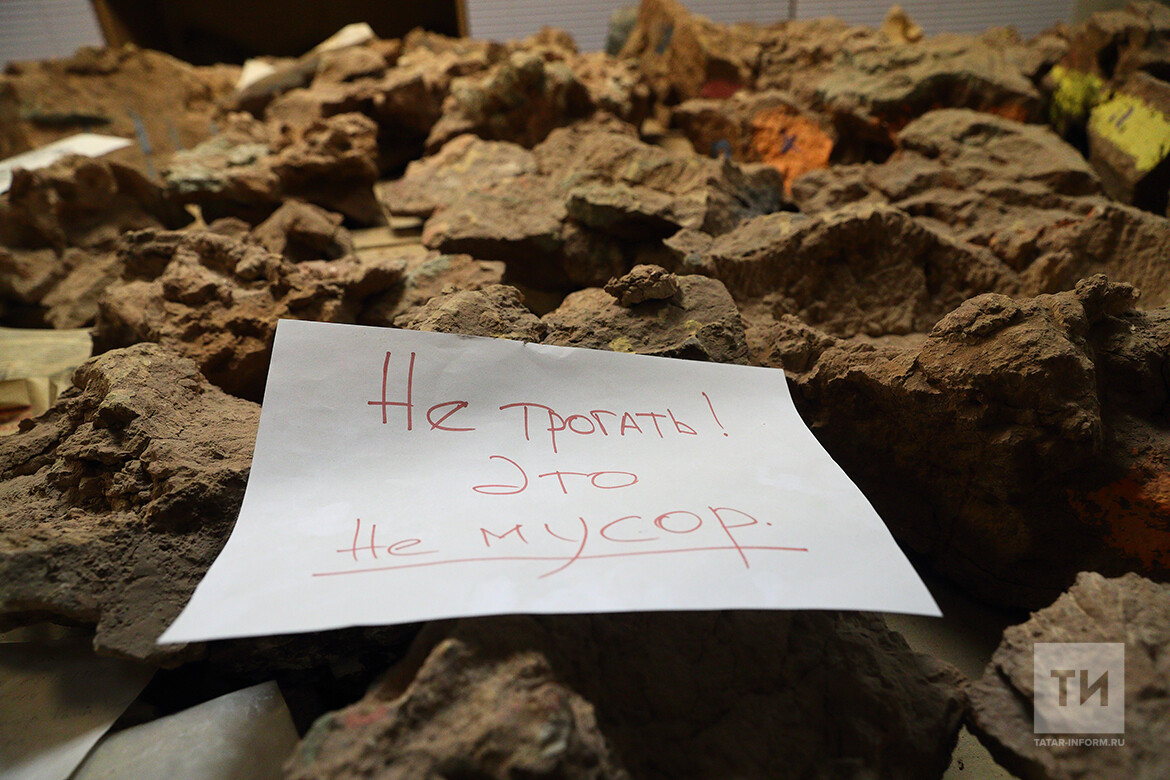 «Не трогать! Это не мусор», – гласит записка на каменных обломках в кабинете.