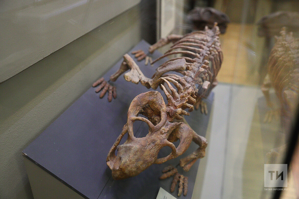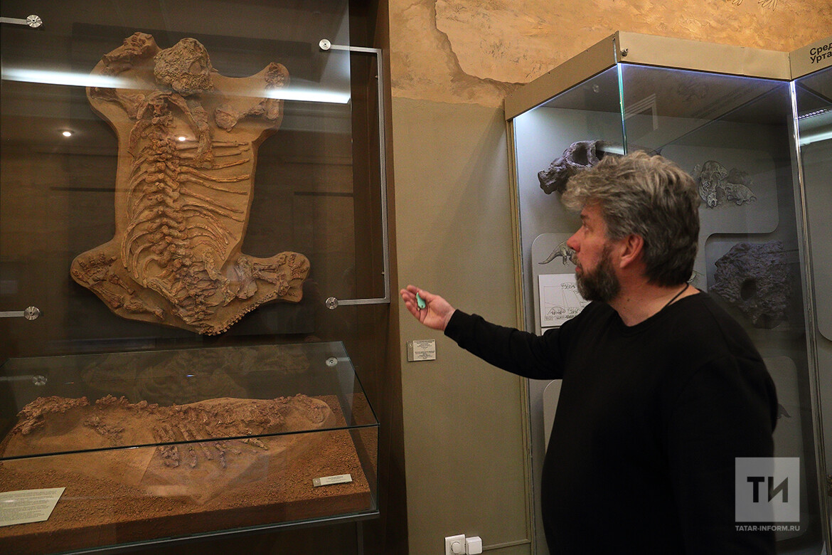 «Это парейазавр. Но это копия, оригинал выставлен в Вятском палеонтологическом музее. При создании нашего музея была сделана копия с их полного и прекрасной сохранности скелета. Таким находкам, кстати, принято давать имена. Можете познакомиться – это Петрович, одна из первых находок», – начал рассказ о научных изысканиях Музея естественной истории Казанского Кремля его ведущий специалист Олег Шиловский.