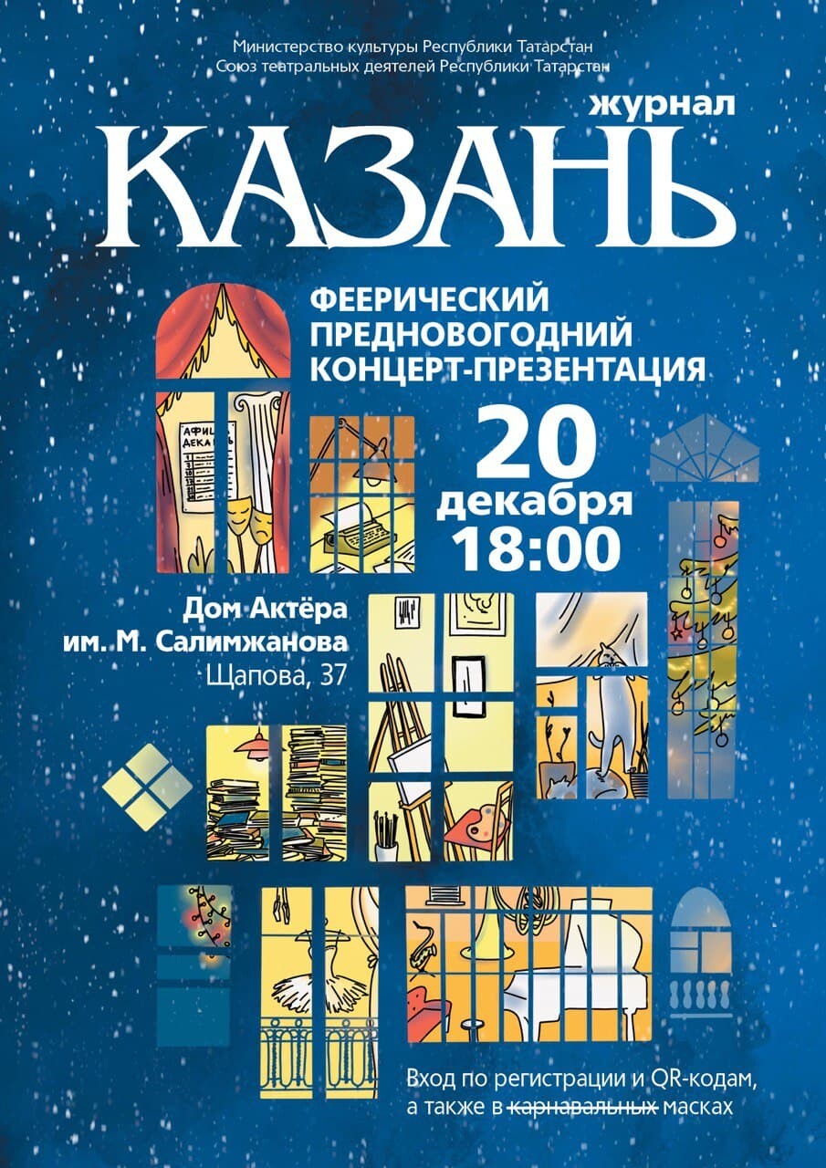 20 декабря журнал «Казань» подведет итоги уходящего года и представит публике ряд последних выпусков. В мероприятии примут участие герои и авторы журнала, а также мастера музыкальной и театральной сцены Казани.