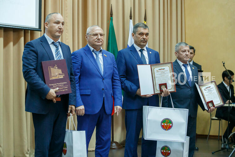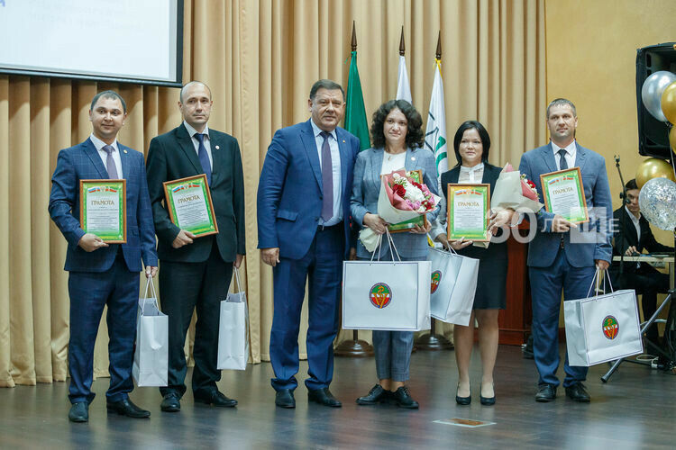 Министр вручил наиболее отличившимся работникам отрасли почетные грамоты и благодарности Минсельхоза России, благодарственные письма и почетный знак Минсельхозпрода РТ, а также благодарности Президента Татарстана и Кабинета министров республики. Почетное звание «Заслуженный ветеринарный врач РТ» было присвоено заместителю начальника Главного управления ветеринарии Кабмина РТ Габдулхаку Мотыгуллину.