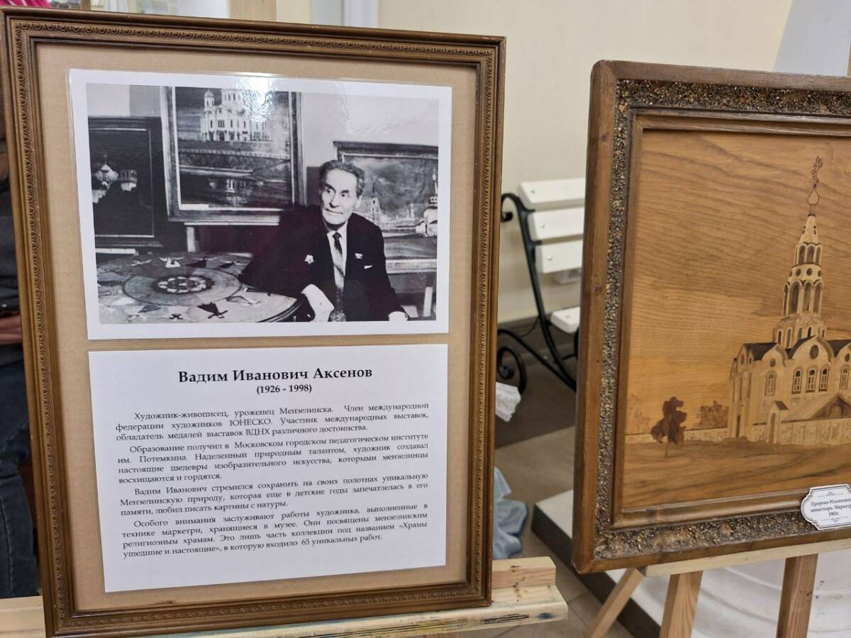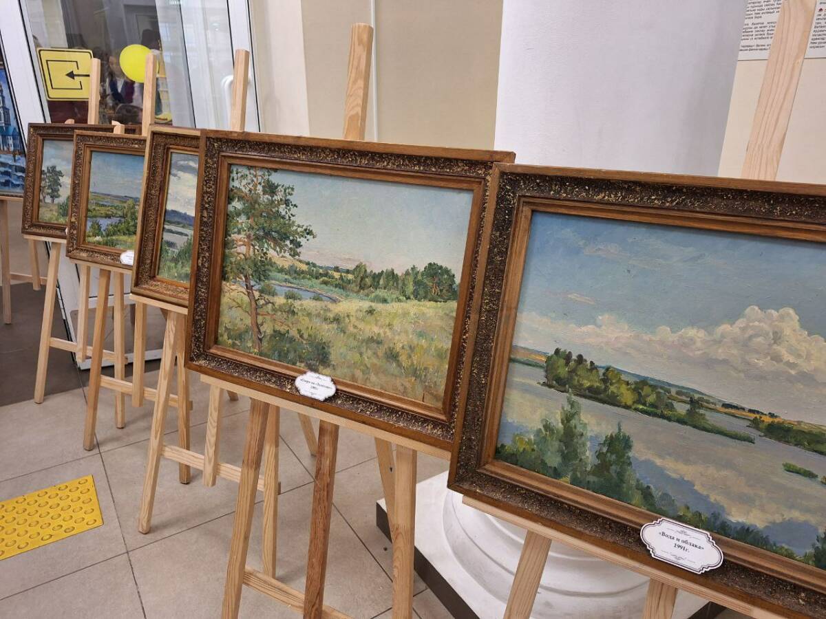 Напротив библиотечного стенда была развернута выставка картин уроженца Мензелинского района Вадима Аксенова. Тридцать лет назад он принес в дар местному краеведческому музею 24 свои работы, 20 из которых посвящены мензелинским пейзажам.
