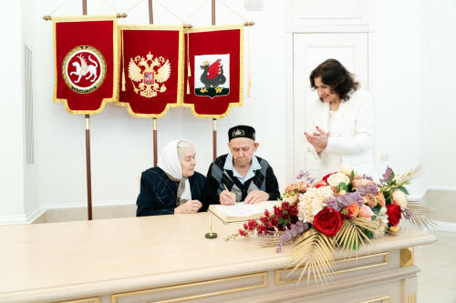 С «железной» свадьбой - 65-летием совместной жизни - поздравили супругов Абдуллу Каримуловича и Рабигу Каюмовну Каримуллиных в центре семьи «Казан». Там же прошел и урок семьеведения для кадетов.